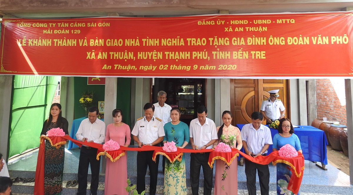 Ngày 2-9, tại tỉnh Bến Tre, Hải đoàn 129, Tổng công ty Tân cảng Sài Gòn phối hợp với các ban, ngành, địa phương tổ chức khánh thành, bàn giao nhà tình nghĩa cho ông Đoàn Văn Phô tại ấp An Ninh A, xã An Thuận, huyện Thạnh Phú, tỉnh Bến Tre.