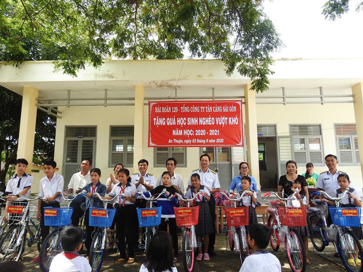 Cũng trong ngày, nhân dịp khai giảng năm học mới, Hải đoàn 129 đã trao tặng 10 chiếc xe đạp và 15 phần quà với tổng số tiền 20 triệu đồng do cán bộ, nhân viên Hải đoàn quyên góp hỗ trợ cho các em học sinh cấp tiểu học và trung học cơ sở trên địa bàn xã An Thuận.