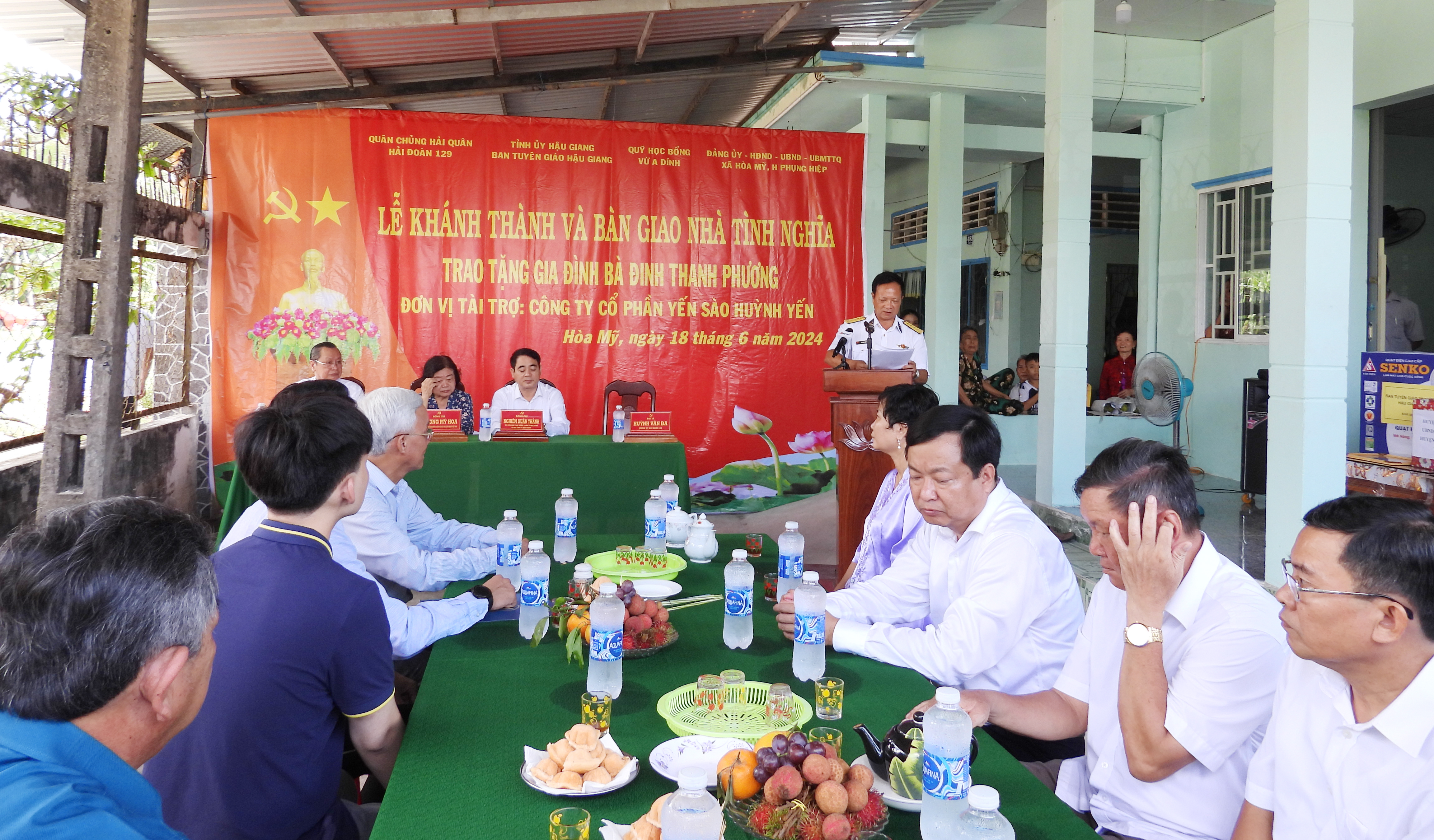 Sáng 18/6, Hải đoàn 129 Hải quân phối hợp với Ban Tuyên giáo Tỉnh ủy Hậu Giang, Quỹ học bổng Vừ A Dính, Công ty Cổ phần Yến sào Huỳnh Yến tổ chức lễ cắt băng khánh thành và bàn giao nhà tình nghĩa tặng gia đình bà Đinh Thanh Phương trú tại xã Hòa Mỹ, huyện Phụng Hiệp, tỉnh Hậu Giang.