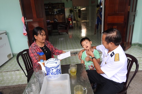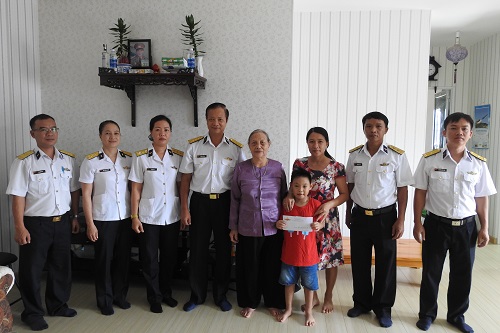 Thượng tá Huỳnh Văn Đa, Phó Chính ủy Hải đoàn cùng đại diện cấp ủy, chỉ huy các đơn vị, Hội phụ nữ cơ sở Hải đoàn đã thăm hỏi, động viên và trao quà cho 6 cháu mắc bệnh hiểm nghèo là con quân nhân, người lao động với tổng số tiền 18 triệu đồng (Tổng công ty Tân cảng Sài Gòn hỗ trợ 9 triệu đồng, số còn lại Hải đoàn trích quỹ).