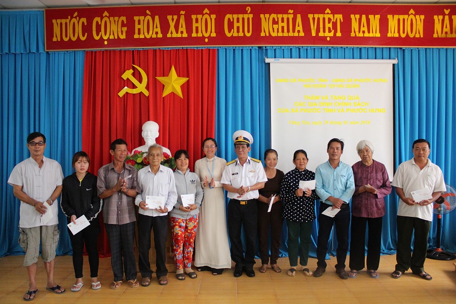 Cũng trong dịp này, Chỉ huy Hải đoàn đã tặng 20 suất quà trị giá 10 triệu đồng cho các gia đình chính sách thuộc 2 xã Phước Hưng và Phước Tỉnh, huyện Long Điền, tỉnh Bà Rịa Vũng Tàu.