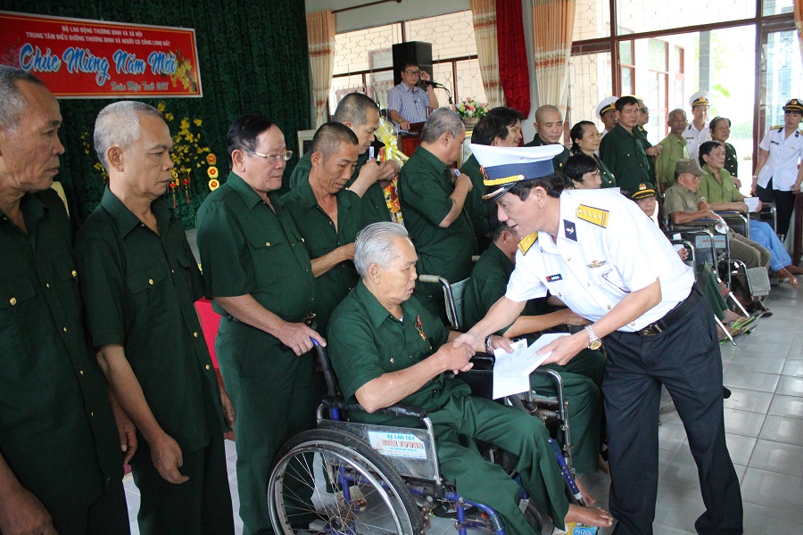 Chỉ huy Hải đoàn tặng quà cho các thương binh tại Trung tâm