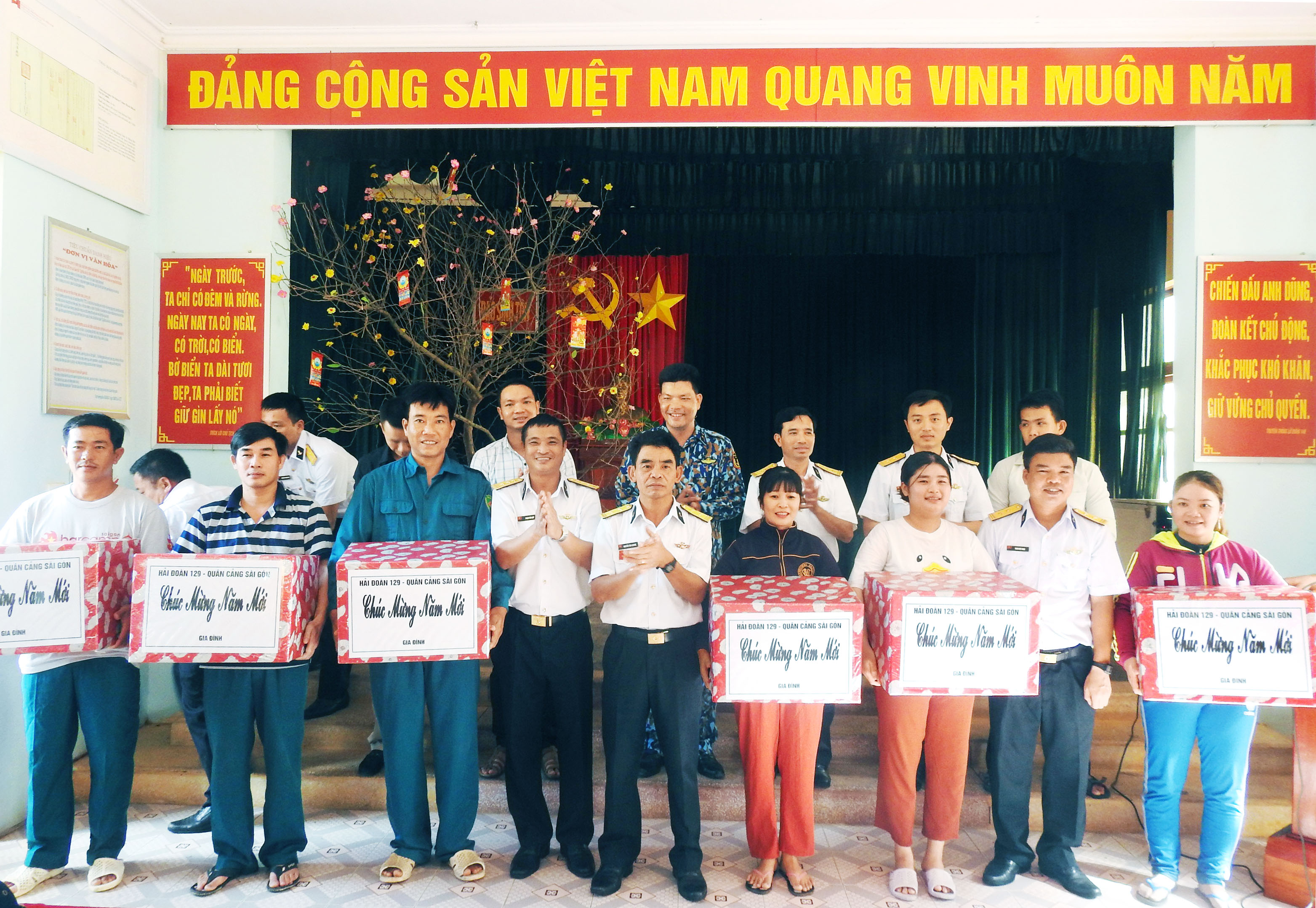 Từ 2 đến 12-1, đoàn công tác của Hải đoàn 129, Quân cảng Sài Gòn do Thượng tá Phạm Văn Quý, Phó Chính ủy Hải đoàn làm trưởng đoàn đã đến thăm, kiểm tra, tặng quà Tết các Trung tâm Hậu cần kỹ thuật (HC-KT) thị trấn Trường Sa, Sinh Tồn; Làng chài Tốc Tan, Làng chài Núi Le thuộc huyện đảo Trường Sa, tỉnh Khánh Hòa.