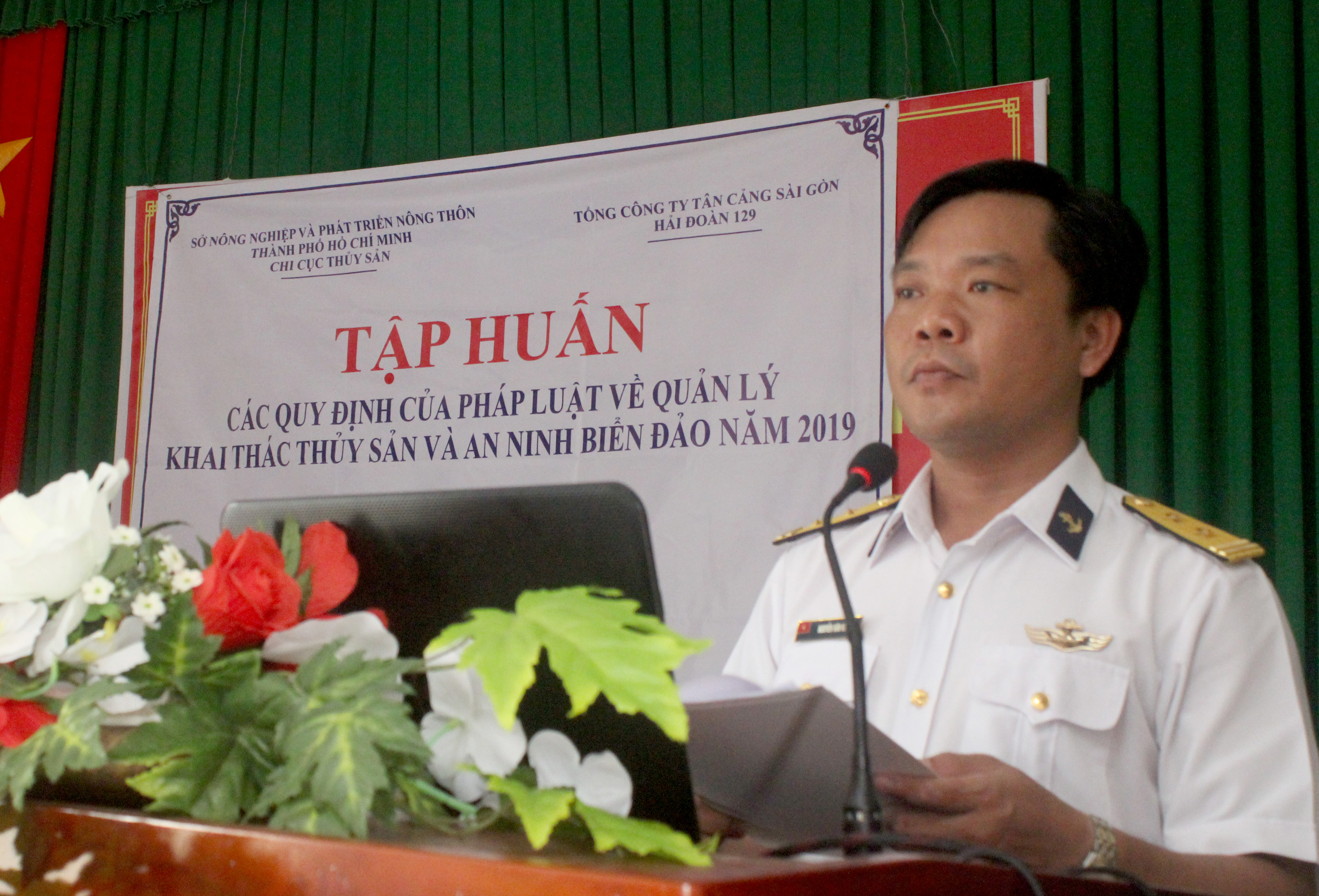 Báo cáo viên Hải đoàn 129 nói chuyện tại buổi tập huấn