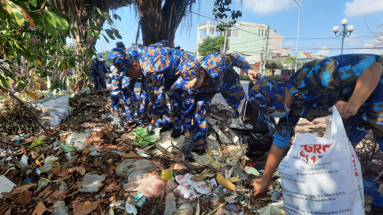 Cán bộ, đoàn viên Hải đoàn 129 thu gom rác thải trên địa bàn Phường 12