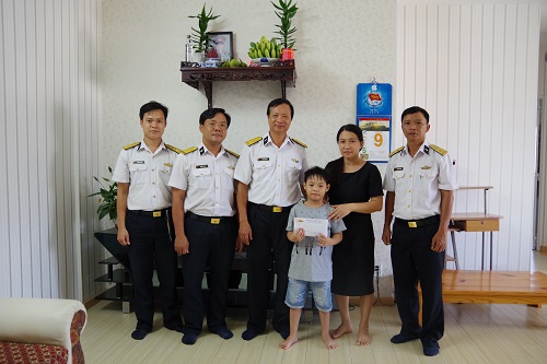 Hai gia đình quân nhân là gia đình Trung úy QNCN Trương Thị Hà, Điều dưỡng viên, Bệnh xá thuộc Phòng Hậu cần, Hải đoàn 129 có con là cháu Hồ Khánh An, sinh năm 2013 bị suy tim bẩm sinh dẫn đến máu lưu thông không đều. Hiện nay, cháu An đã được bác sĩ bệnh viện Nhi đồng II khám và hẹn lịch mổ.