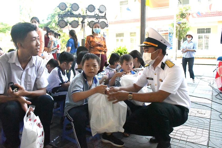 Dịp này, Hải đoàn 129 đã trao 300 phần quà và 25 suất học bổng tặng các cháu thiếu nhi khuyết tật, với tổng số tiền gần 30 triệu đồng.