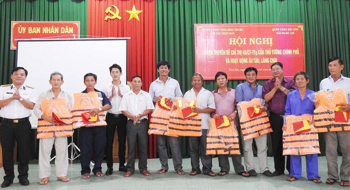 Cũng tại hội nghị, đại diện Hải đoàn 129 đã tặng áo phao, cờ Tổ quốc cho một số ngư dân địa phương. Thời gian tới, đoàn công tác của Hải đoàn 129 tiếp tục tổ chức 6 buổi tuyên truyền cho khoảng 600 ngư dân trên địa bàn tỉnh Bình Thuận và Khánh Hòa.