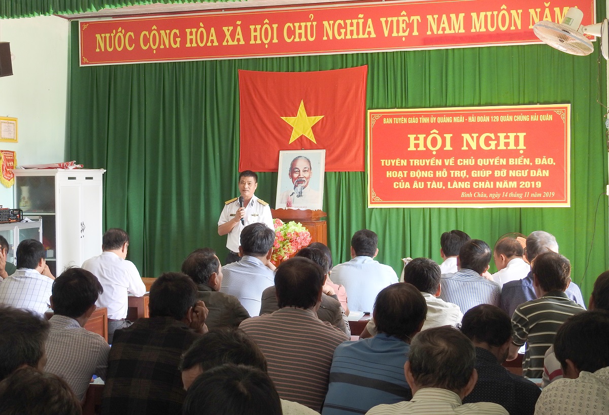 Từ 11 đến 15-11, đoàn công tác của Hải đoàn 129, Quân cảng Sài Gòn do Thượng tá Phạm Văn Quý, Phó Chính ủy Hải đoàn làm trưởng đoàn đã phối hợp với Ban Tuyên giáo và Chi cục Thủy sản các tỉnh Bình Định, Quảng Ngãi, Khánh Hòa tổ chức tuyên truyền về vị trí, vai trò của các âu tàu, làng chài cho 300 lượt ngư dân và cán bộ các địa phương.