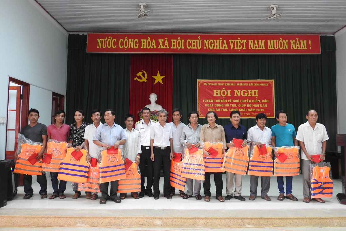 Hải đoàn đã tặng 250 áo phao cá nhân và 250 lá cờ Tổ quốc cho ngư dân tỉnh Quảng Ngãi và Khánh Hòa.