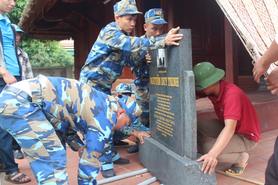 Cán bộ, chiến sĩ Hải đội đã tổ chức tu sửa Nhà tưởng niệm đồng chí Nguyễn Duy Trinh, nguyên Ủy viên Bộ Chính trị, nguyên Phó Thủ tướng Chính Phủ, nguyên Bộ trưởng Bộ Ngoại giao tại xóm 12, xã Phúc Thọ, huyện Nghi Lộc, tỉnh Nghệ An.