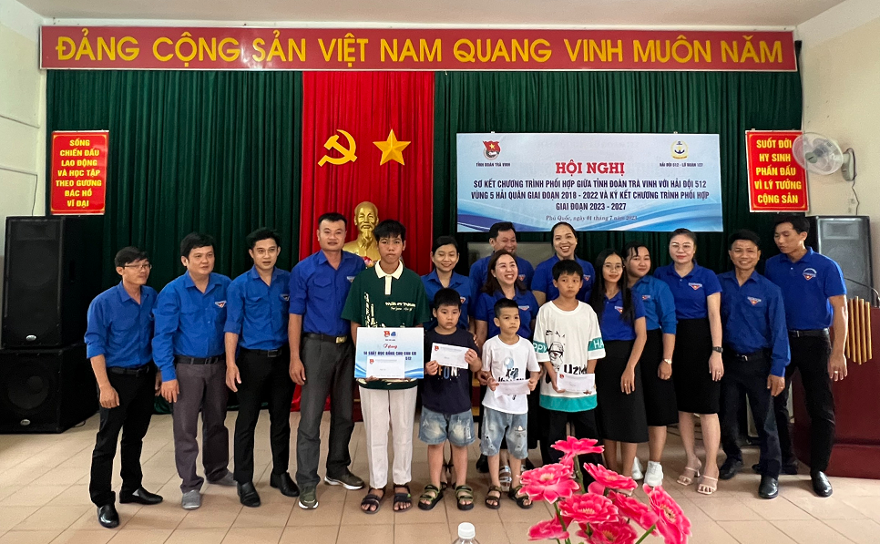 Tỉnh đoàn Trà Vinh tặng học bổng cho các cháu là con quân nhân Hải đội 512