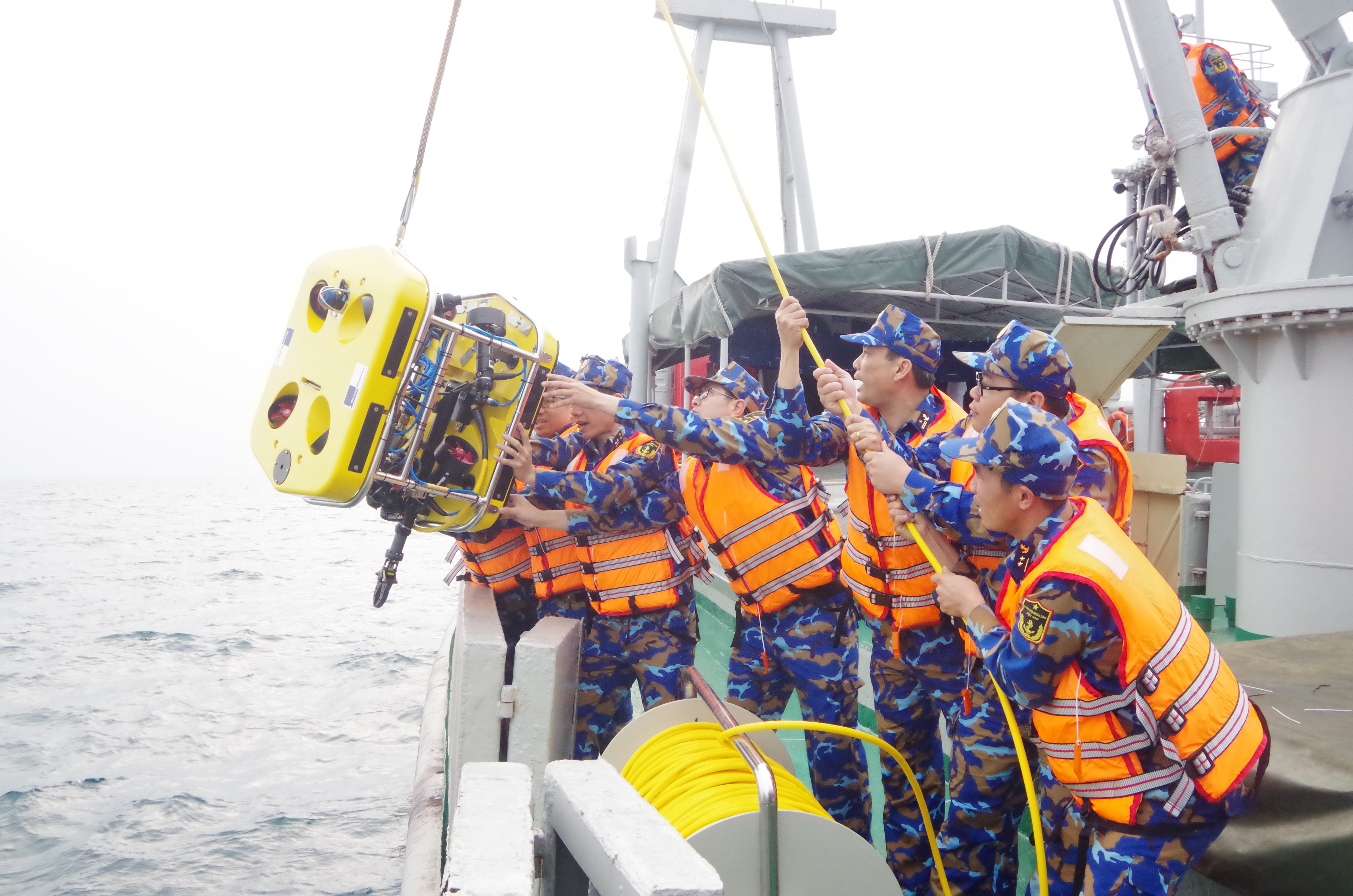 Triển khai thiết bị lặn biển ROV. Ảnh: TTV