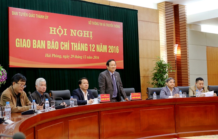 Chiều 29-12, Ban tuyên giáo Thành ủy, Sở Thông tin và Truyền thông, Hội nhà báo, Văn phòng UBND thành phố Hải Phòng phối hợp tổ chức hội nghị giao ban báo chí tháng 12 và tổng kết hoạt động báo chí năm 2016. Đồng chí Nguyễn Hữu Doãn, Ủy viên Ban thường vụ Thành ủy, Trưởng ban Tuyên giáo Thành ủy chủ trì hội nghị.