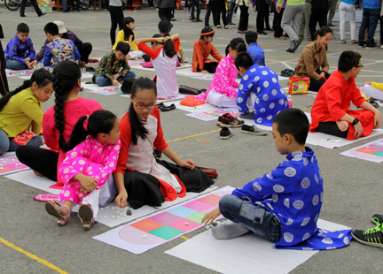 Học sinh tham gia trò chơi dân gian ô ăn quan. Ảnh: CTV