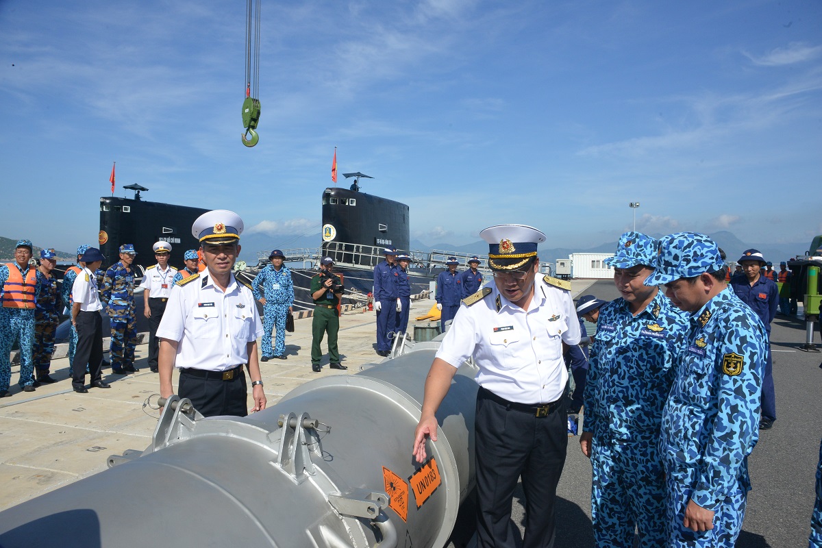 Tư lệnh Hải quân kiểm tra vũ khí, trang bị tại Lữ đoàn 189. Ảnh: Trọng Thiết
