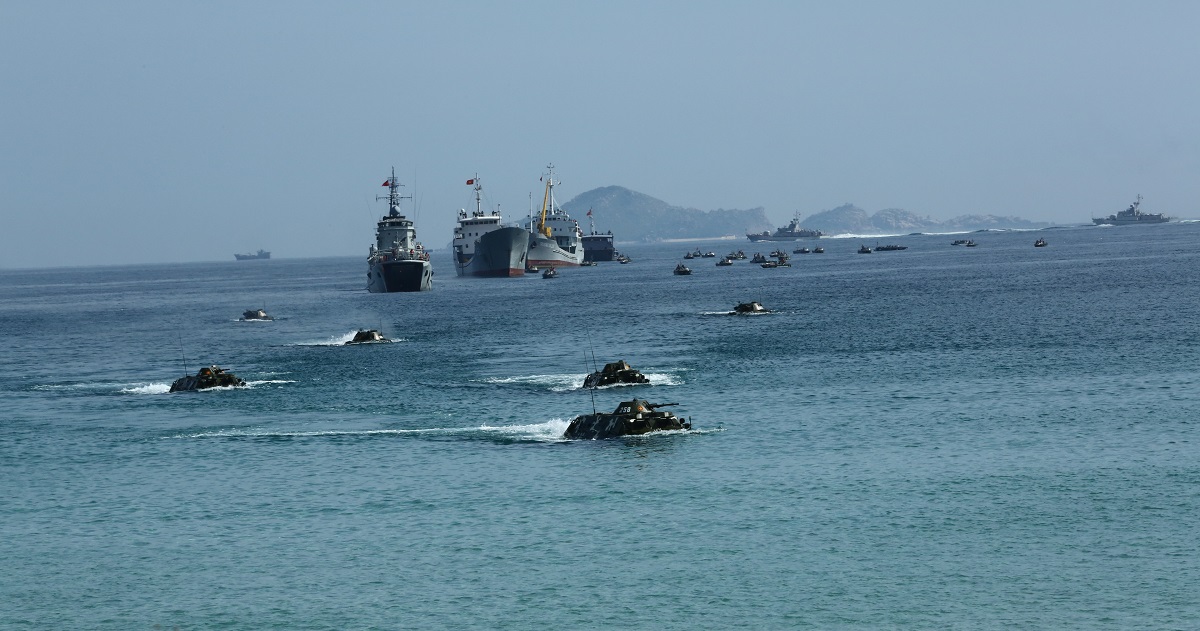 Huấn luyện hiệp đồng đổ bộ đường biển. Ảnh: Kao Dân