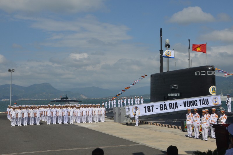 Cán bộ, thủy thủ Tàu ngầm 187 tại Lễ thượng cờ. Ảnh: Trọng Thiết