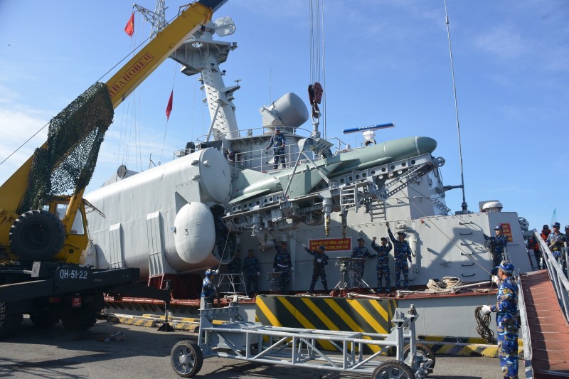 Lữ đoàn 162, Vùng 4 Hải quân chuẩn bị tên lửa cho nhiệm vụ huấn luyện. Ảnh: Trọng Thiết