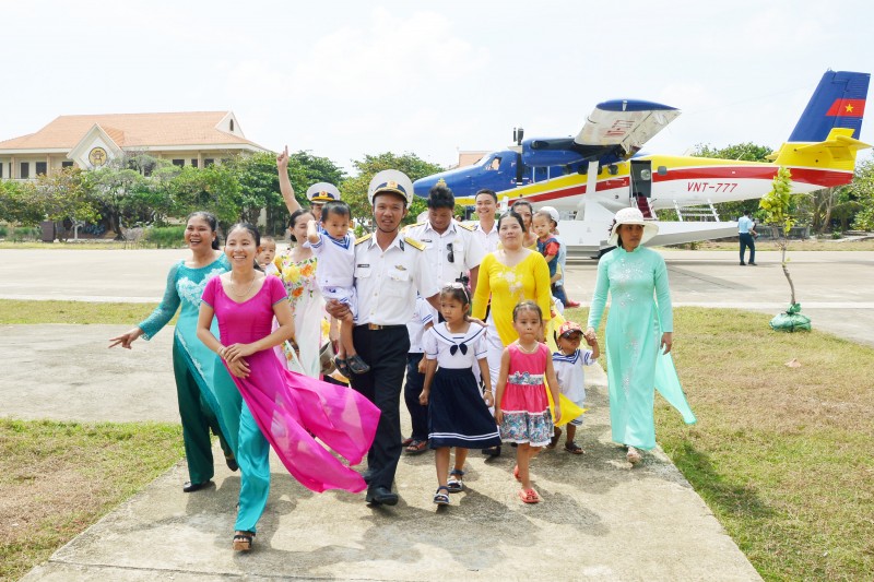Quân dân Trường Sa đón thủy phi cơ DHC-6 thăm Trường Sa. Ảnh: Trọng Thiết