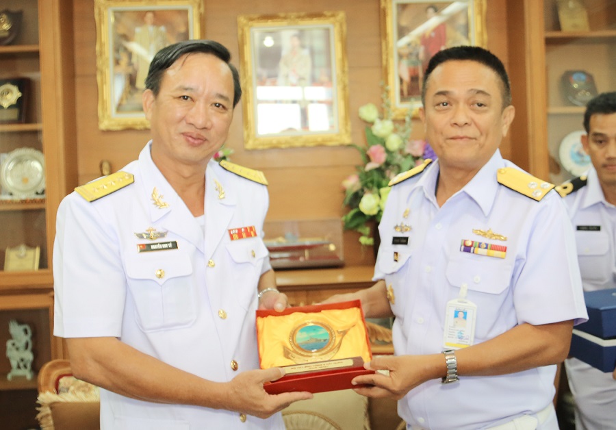 Đại tá Nguyễn Duy Tỷ, Phó Tư lệnh, Tham mưu trưởng Vùng 5 HQND Việt Nam tặng Phó Đô đốc Banchop PhoDanh, Tư lệnh Vùng 1 HQHG Thái Lan biểu trưng của Vùng 5