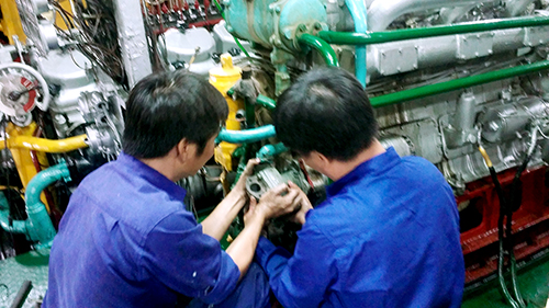 Bảo quản trang bị, kỹ thuật ở Tàu 511. Ảnh: Công Trình