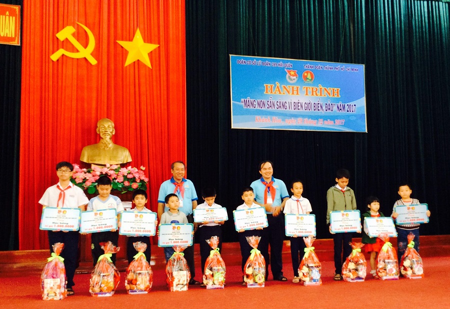 Đoàn đã tặng 20 suất học bổng, mỗi suất trị giá 1 triệu đồng và quà cho các cháu học sinh là con cán bộ, nhân viên Lữ đoàn.