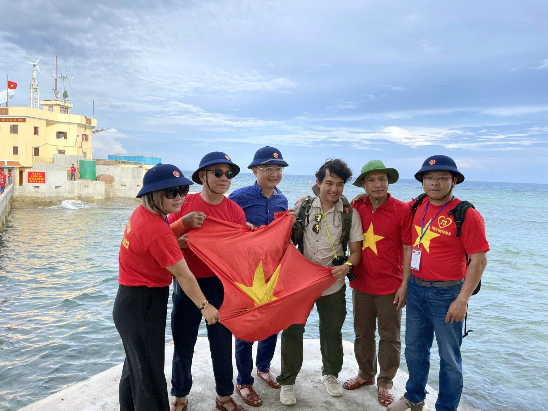 Trần Đặng Đăng Khoa chụp ảnh cùng các đại biểu ra thăm đảo Trường Sa-Nhà giàn DK1