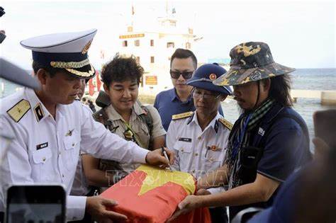 Trong đêm giao lưu văn nghệ trên boong Tàu 571, sau những tiết mục văn nghệ sôi nổi, độc đáo, Trần Đặng Đăng Khoa xung phong lên sân khấu, chia sẻ lại hành trình đặc biệt của lá cờ đỏ sao vàng trước sự bất ngờ và cảm phục của hàng trăm đại biểu trên tàu. “Lá cờ Tổ quốc đã cùng tôi đi khắp thế giới và giúp tôi kết bạn với rất nhiều người. Điều đáng chú ý là lá cờ trước đây đã ở Trường Sa, có chữ ký của cán bộ và chiến sĩ ở đảo Phan Vinh. Và hôm nay, trên chuyến tàu này lá cờ lại hành trình để quay trở về nhà với mảnh đất thiêng liêng của Tổ quốc”- Trần Đặng Đăng Khoa nói.