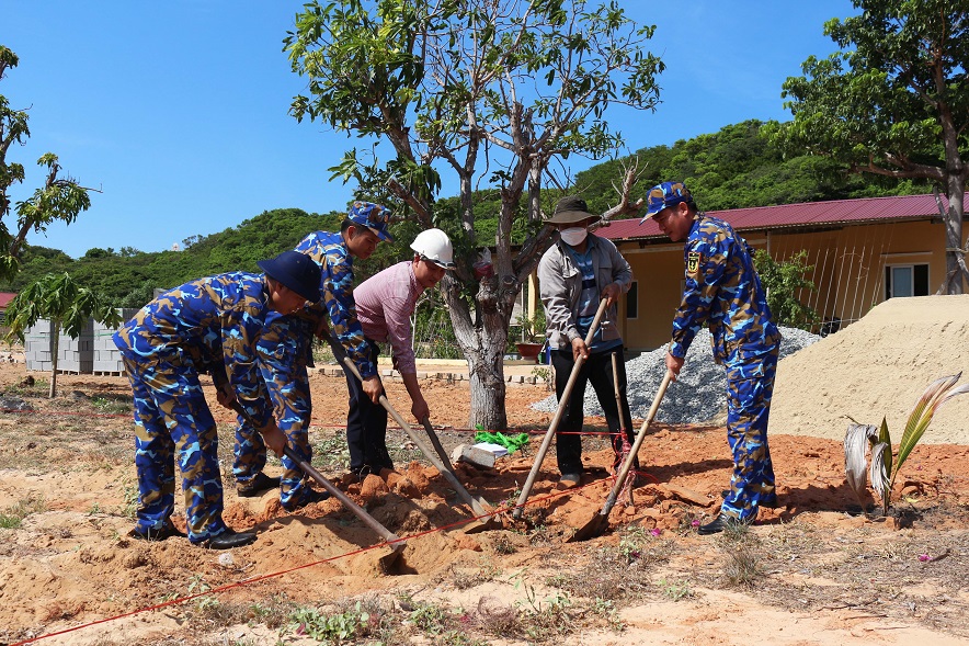 Thủ trưởng Lữ đoàn cùng các kỹ sư nông nghiệp động thổ xây dựng công trình