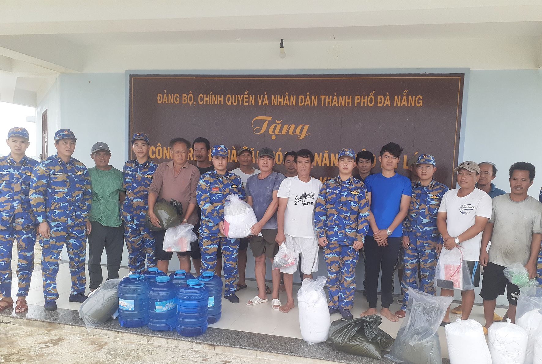 Cán bộ, chiến sĩ đảo Đá Lát hỗ trợ ngư dân gạo và nước ngọt