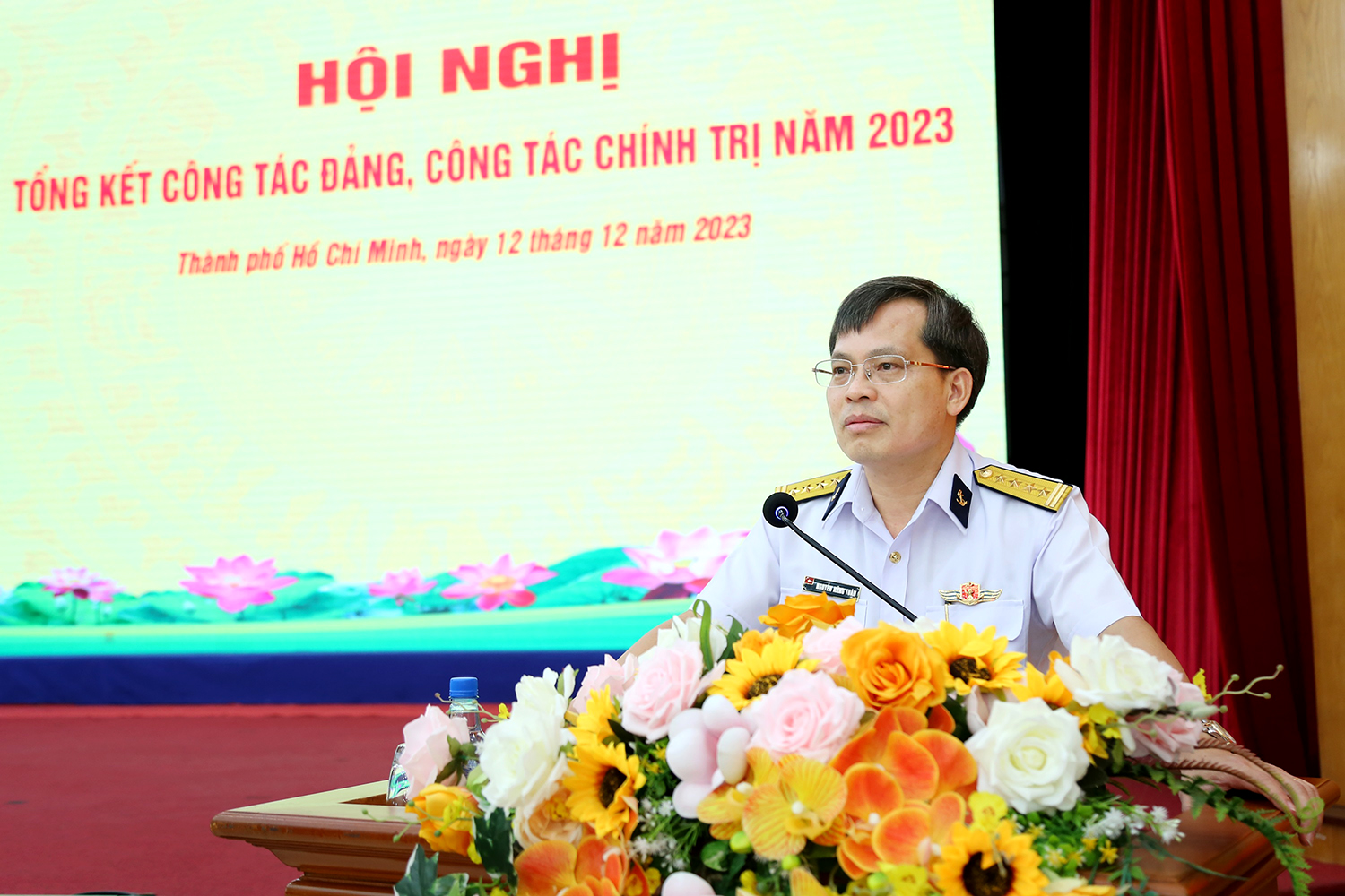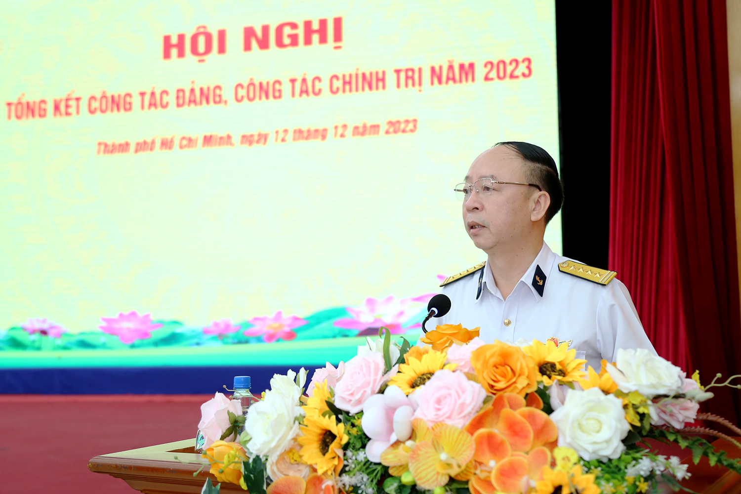 Đại tá Đỗ Văn Tú, Chủ nhiệm Chính trị TCT báo cáo kết quả CTĐ, CTCT năm 2023