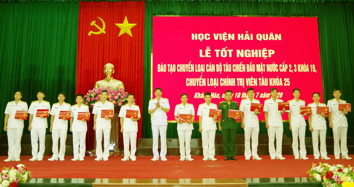 Ngày 10-7, tại TP. Nha Trang, tỉnh Khánh Hòa, Học viện Hải quân tổ chức Lễ bế giảng lớp đào tạo chuyển loại cán bộ tàu chiến đấu mặt nước cấp 2, 3 Khoá 19 và chuyển loại cán bộ chính trị viên tàu Khoá 25. Đại tá, TS. Nguyễn Đức Nam, Phó Giám đốc Học viện dự và chủ trì buổi lễ.
