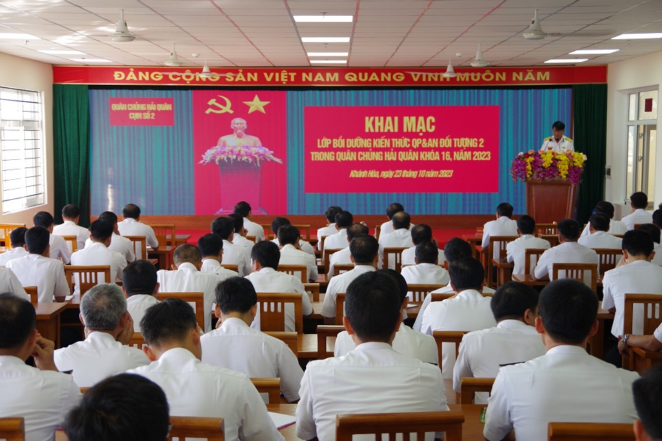 Sáng 23/10, tại TP. Nha Trang, tỉnh Khánh Hòa, Học viện Hải quân tổ chức khai mạc lớp bồi dưỡng kiến thức quốc phòng và an ninh năm 2023 cho cán bộ, chỉ huy thuộc cụm số 2 của Quân chủng Hải quân. Đại tá Huỳnh Vĩnh Tuyến, Phó Giám đốc Học viện dự và phát biểu khai mạc.