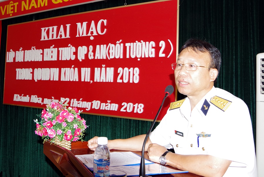 Ngày 22-10, tại TP. Nha Trang, tỉnh Khánh Hòa, Học viện Hải quân tổ chức khai mạc lớp bồi dưỡng kiến thức quốc phòng và an ninh(QP&AN) đối tượng 2, Khóa 7 năm 2018. Đại tá, PGS,TS Nguyễn Văn Tâm, Phó Giám đốc Học viện dự và phát biểu khai mạc.