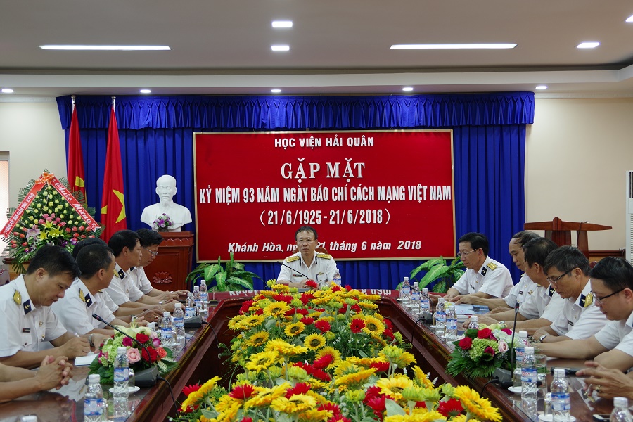 Chiều 21-6, tại Nha Trang, Khánh Hòa, Học viện Hải quân tổ chức gặp mặt kỷ niệm 93 năm Ngày báo chí cách mạng Việt Nam (21-6-1925 - 21-6-2018). Đại tá, PGS, TS. Nguyễn Văn Tâm, Phó Giám đốc Học viện chủ trì buổi gặp mặt.