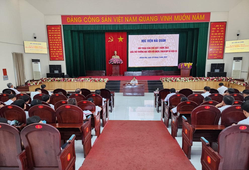 Ngày 30/3, tại TP. Nha Trang, tỉnh Khánh Hòa, Học viện Hải quân tổ chức Hội nghị đối thoại dân chủ Quý 1 năm 2023. Đại tá Lê Hồng Chiến, Phó Giám đốc Học viện chủ trì.
