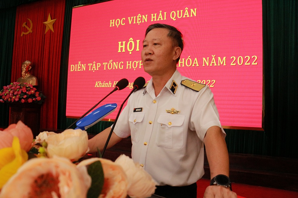 Chiều 12/5, tại thành phố Nha Trang, tỉnh Khánh Hòa, Học viện Hải quân tổ chức Hội thảo diễn tập tổng hợp cuối khóa năm 2022. Tham dự hội thảo có các đồng chí trong Đảng ủy, Ban Giám đốc Học viện cùng gần 150 cán bộ, giảng viên. Chuẩn Đô đốc, PGS. TS Nguyễn Văn Lâm, Giám đốc Học viện, Trưởng ban chỉ đạo diễn tập chủ trì.