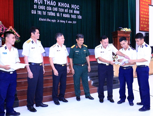 Ngày 26-8, tại TP. Nha Trang, tỉnh Khánh Hòa, Học viện Hải quân đã tổ chức thành công Hội thảo khoa học với chủ đề: “Di chúc của Chủ tịch Hồ Chí Minh - Giá trị tư tưởng và ý nghĩa thực tiễn” nhân kỷ niệm 50 năm thực hiện Di chúc của Người. Chuẩn Đô đốc Phạm Văn Quang, Phó Chủ nhiệm Chính trị Hải quân dự và chỉ đạo hội thảo; tham gia hội thảo có đại biểu Ban Tuyên giáo Tỉnh ủy Khánh Hòa, đại biểu các nhà trường trong và ngoài quân đội trên địa bàn tỉnh Khánh Hòa cùng hàng trăm cán bộ, giảng viên, học viên tiêu biểu của Học viện Hải quân.
