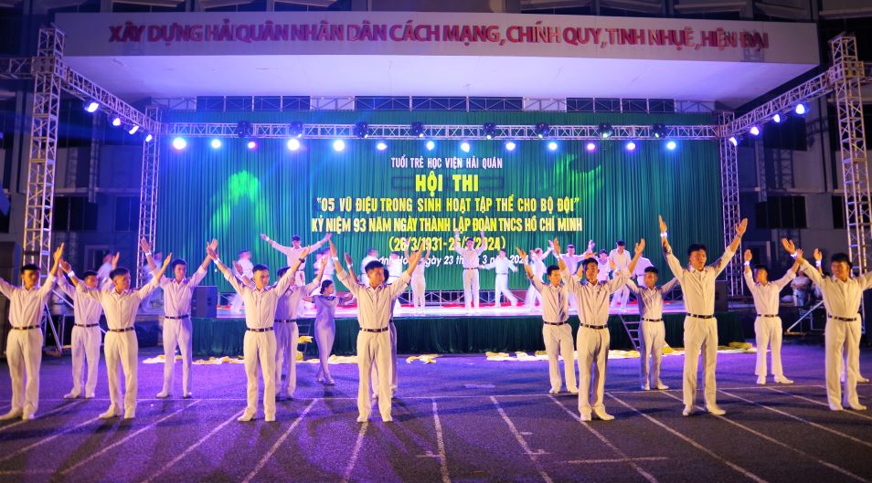 Tối 23/3, tại TP. Nha Trang, tỉnh Khánh Hòa, Học viện Hải quân tổ chức Hội thi 5 vũ điệu trong sinh hoạt tập thể cho bộ đội. Đến dự và động viên có Đại tá Bùi Duy Thống, Phó Chính ủy Học viện.