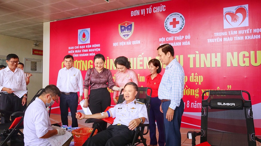 Những năm qua, Học viện Hải quân là một trong những đơn vị đi đầu trong hưởng ứng tham gia các hoạt động hiến máu nhân đạo của tỉnh Khánh Hòa. Tính từ năm 2016 đến nay, Học viện đã phát động 12 đợt hiến máu tình nguyện, huy động trên 9.000 lượt tình nguyện viên, hiến tặng hơn 8.000 đơn vị máu khỏe, có ý nghĩa to lớn trong công tác cấp cứu, điều trị của các bệnh viện.