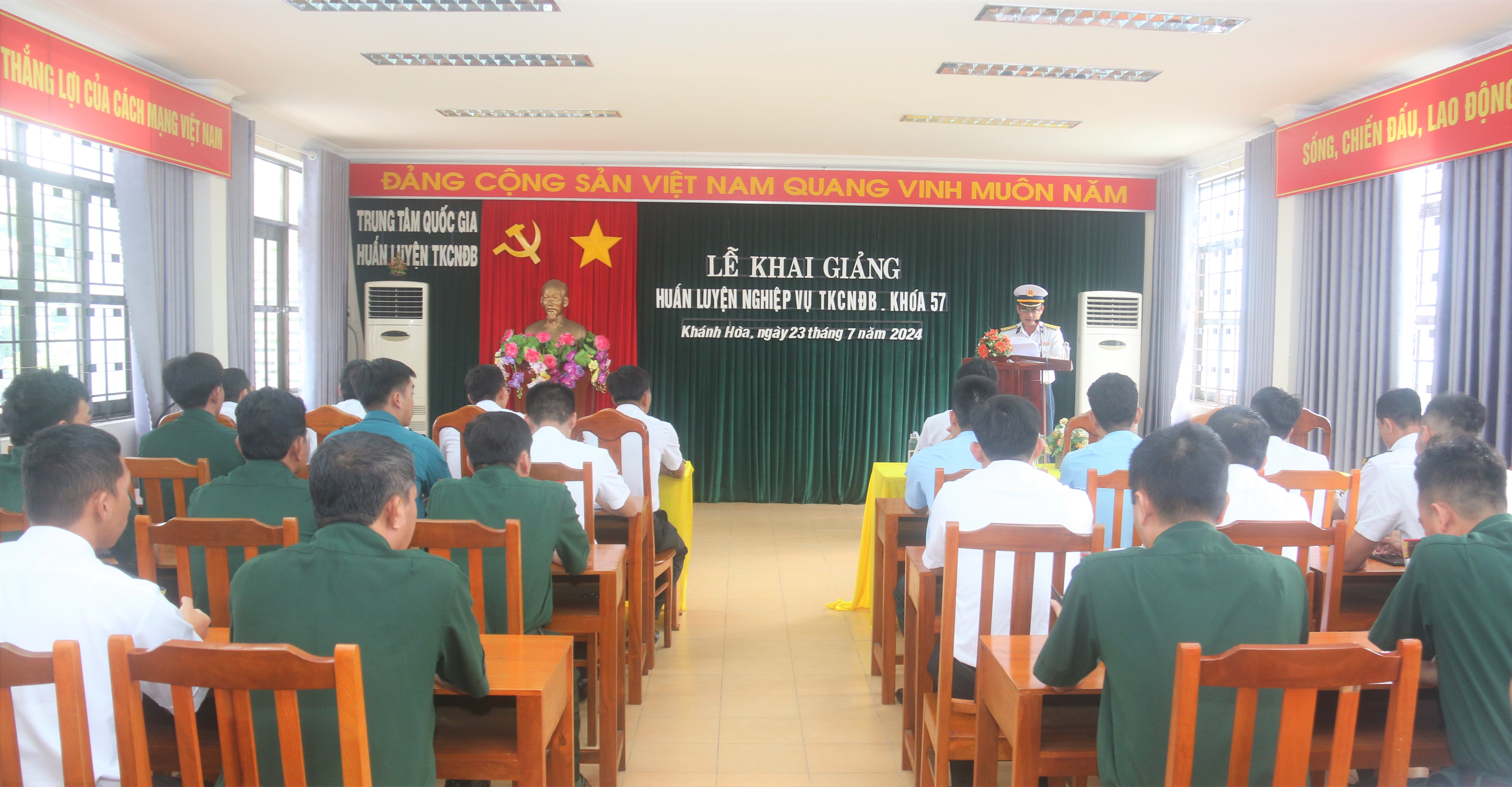Chiều 23/7, tại TP. Nha Trang, tỉnh Khánh Hòa, Học viện Hải quân tổ chức Lễ khai giảng Khóa 57 huấn luyện nghiệp vụ tìm kiếm cứu nạn (TKCN) đường biển cho các học viên là nhân viên làm nhiệm vụ TKCN trên biển thuộc các bộ, ngành, địa phương và đơn vị. Đại tá PGS, TS Hồ Thanh Hòa, Phó Giám đốc Học viện dự và chủ trì.