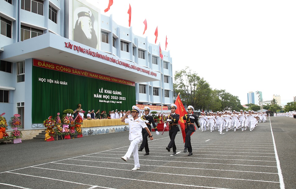 Chiều 15/9, tại TP. Nha Trang, tỉnh Khánh Hòa, Học viện Hải quân tổ chức Lễ khai giảng năm học 2022-2023. Chuẩn Đô đốc Phạm Mạnh Hùng, Phó Tư lệnh, Tham mưu trưởng Hải quân dự và chỉ đạo. Chuẩn Đô đốc, PGS. TS Nguyễn Văn Lâm, Giám đốc Học viện chủ trì buổi lễ.