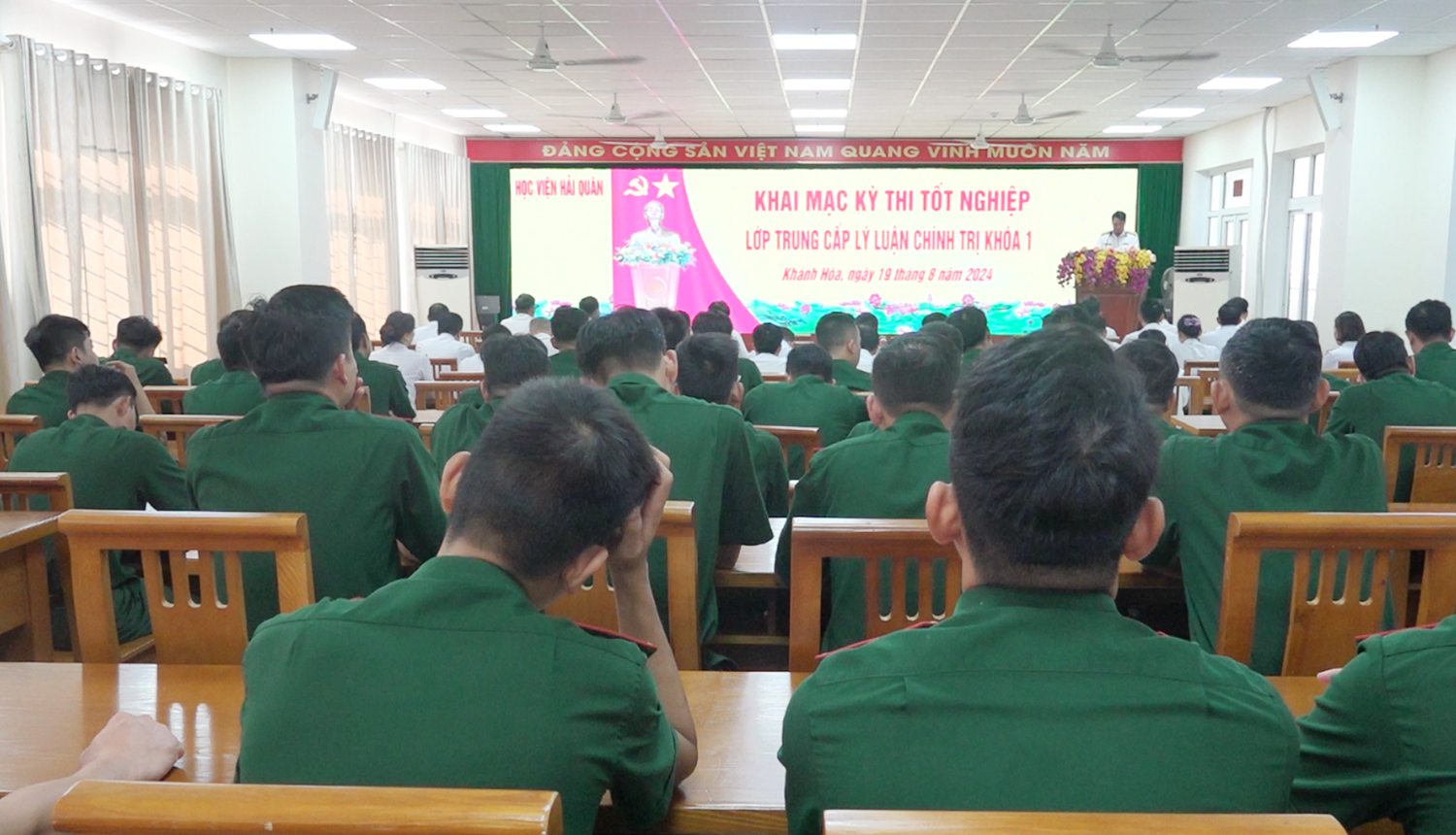 Sáng 19/8, tại TP. Nha Trang, tỉnh Khánh Hòa, Học viện Hải quân tổ chức khai mạc kỳ thi tốt nghiệp lớp Trung cấp lý luận chính trị Khóa 1 năm 2024. Đại tá Huỳnh Vĩnh Tuyến, Phó Giám đốc Học viện, Phó Chủ tịch thường trực Hội đồng thi tốt nghiệp chủ trì.