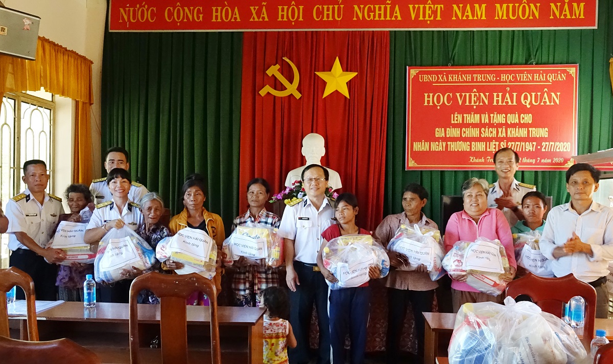 Nhân kỷ niệm 73 năm Ngày Thương binh, liệt sĩ, ngày 22-7, Học viện Hải quân đã tổ chức đoàn công tác gồm các tổ chức: Công đoàn, phụ nữ, thanh niên, quân y lên thăm, tặng quà, khám bệnh và cấp thuốc miễn phí cho bà con nhân dân xã miền núi Khánh Trung, huyện Khánh Vĩnh, tỉnh Khánh Hòa.