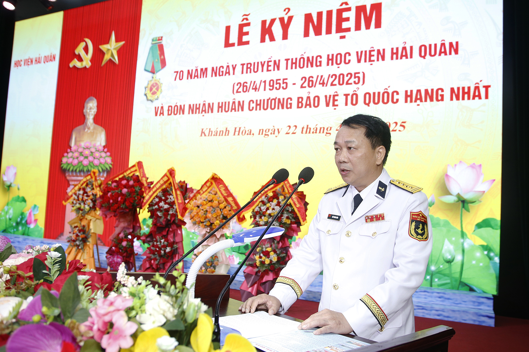 Phát biểu tại buổi lễ, thay mặt Quân ủy Trung ương, Bộ Quốc phòng, Thượng tướng Phạm Hoài Nam ghi nhận, biểu dương những kết quả, thành tích xuất sắc của Học viện Hải quân trong 70 năm qua. Đồng chí yêu cầu Đảng ủy, Ban Giám đốc và cán bộ, giảng viên, nhân viên, học viên, chiến sĩ cần tiếp tục quán triệt sâu sắc và tổ chức thực hiện tốt các nghị quyết, chỉ thị của Đảng, Nhà nước, Quân ủy Trung ương và Bộ Quốc phòng về đổi mới công tác giáo dục và đào tạo, đáp ứng yêu cầu xây dựng Quân đội trong tình hình mới.