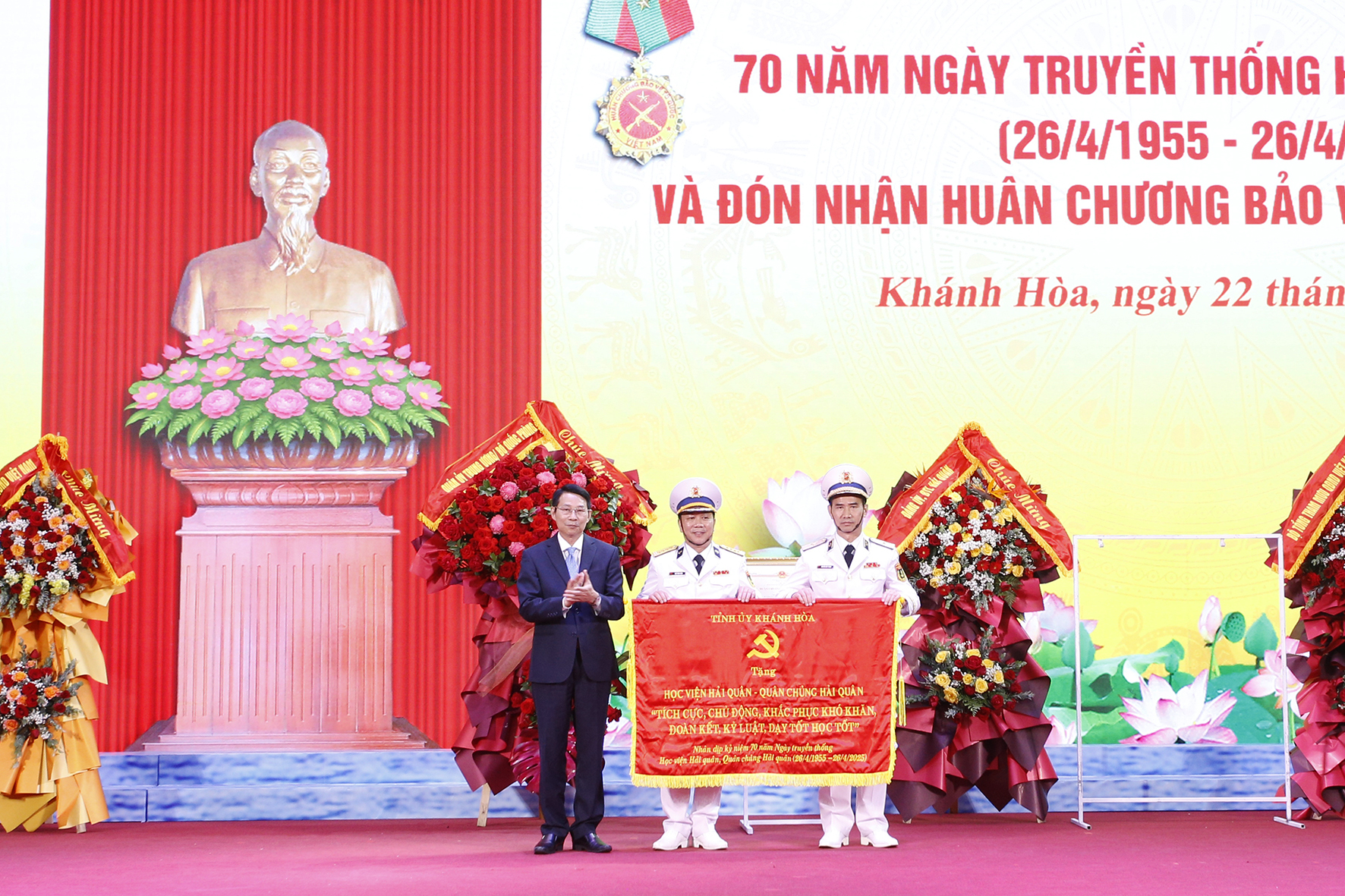 Dịp này Tỉnh ủy Khánh Hòa cũng tặng Học viện Hải quân bức trướng: “Tích cực chủ động, khắc phục khó khăn, đoàn kết kỷ luật, dạy tốt học tốt”.