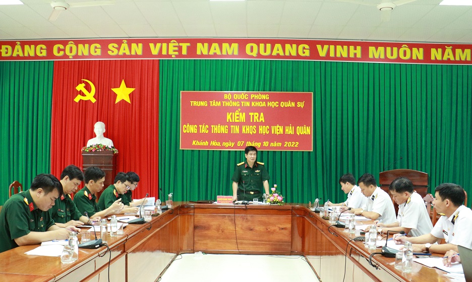 Dịp này, đoàn công tác cũng đã tiến hành kiểm tra công tác chuẩn bị tổ chức Hội thi cán bộ, nhân viên thư viện số dùng chung trong Bộ Quốc phòng năm 2022 tại Học viện Hải quân. Thời gian thi từ ngày 25 đến 27/10.