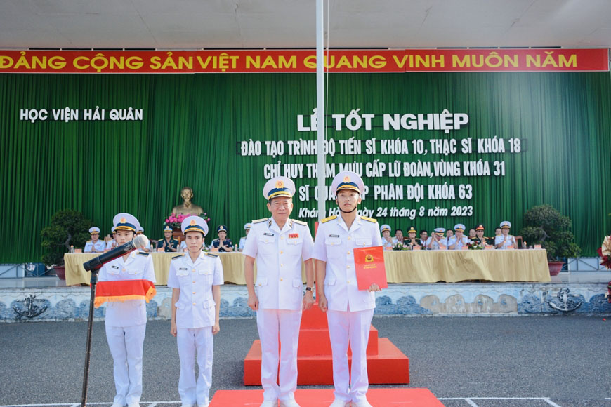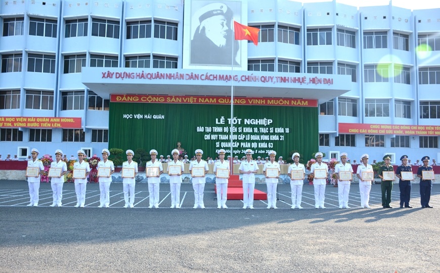 Tại buổi lễ, Học viện Hải quân đã công bố quyết định và trao bằng, chứng nhận tốt nghiệp, trao quyết định phong, thăng quân hàm cho học viên tốt nghiệp.