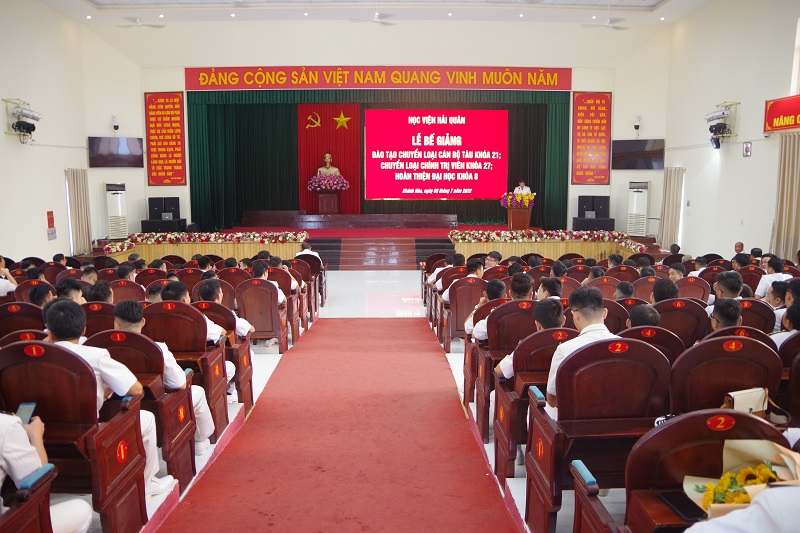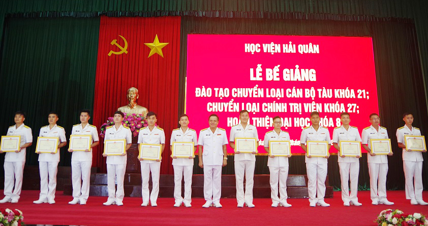 Chiều 6/7, Học viện Hải quân tổ chức Lễ tốt nghiệp cho các học viên đào tạo chuyển loại cán bộ chỉ huy tàu mặt nước cấp 2, 3 Khoá 21; chuyển loại cán bộ chính trị viên tàu Hải quân Khóa 27 và hoàn thiện đại học Khóa 8. Đại tá, Bùi Duy Thống, Phó Chính ủy Học viện dự và chủ trì.